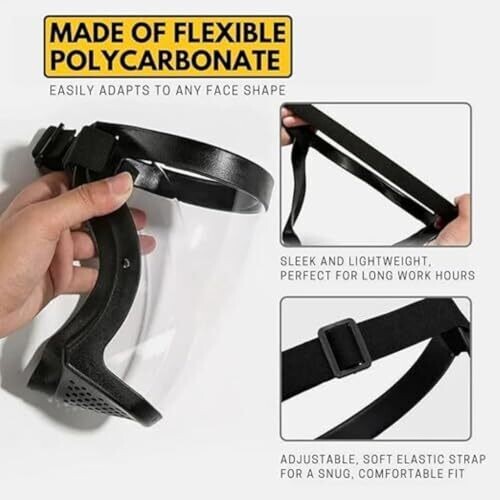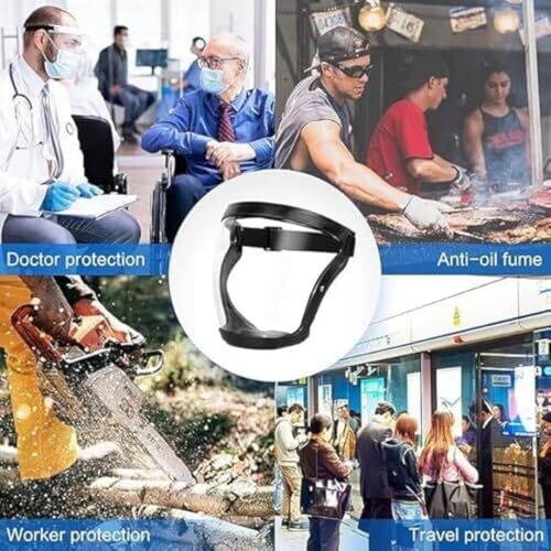 Anti-Fog Full Face Shield, Adjustable Visor, Reusable Mask, Lightweight Protection HD (Black)