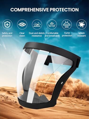 - Full-face coverage helps protect eyes, nose, and mouth from dust, splashes, and debris.
