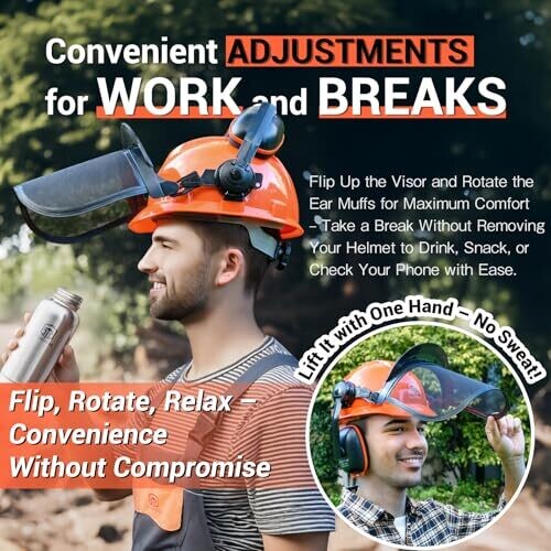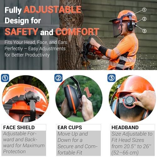 All-in-one protective gear combines a helmet, face shield, and ear protection in a lightweight unit. Adjustable headband, removable ear protectors, anti-fog goggles, and a mesh visor offer clear visibility and comfortable fit for forestry and chainsaw tasks.