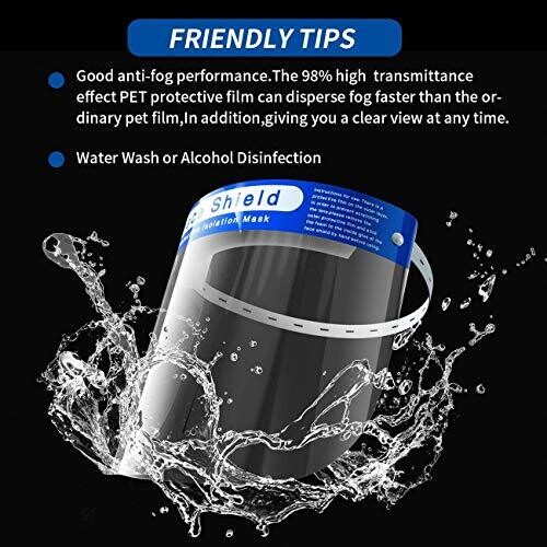 Lightweight adjustable face shield protects eyes, nose and mouth with a clear open-face design. Breathable, comfortable all-day wear with a soft sponge cushion and adjustable elastic headband. Durable PET shield offers anti-fog visibility for home, work, and outdoor use.