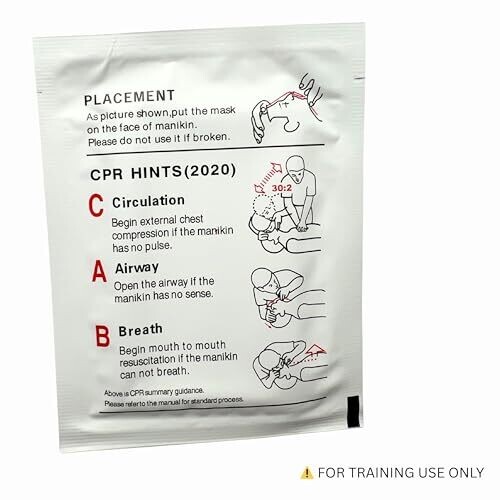 Enhance CPR training with hygienic, individually wrapped facial shields for each participant. Lightweight and comfortable for quick donning, durable for repeat sessions, and low-profile to minimize interference during mouth-to-mouth simulations, with clear visibility for effective instructor feedback.