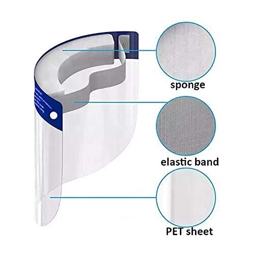 Adjustable Face Shield Protect Eyes and Face Clear Open-Face Shield with Elastic Band and Comfort Sponge (10pcs)