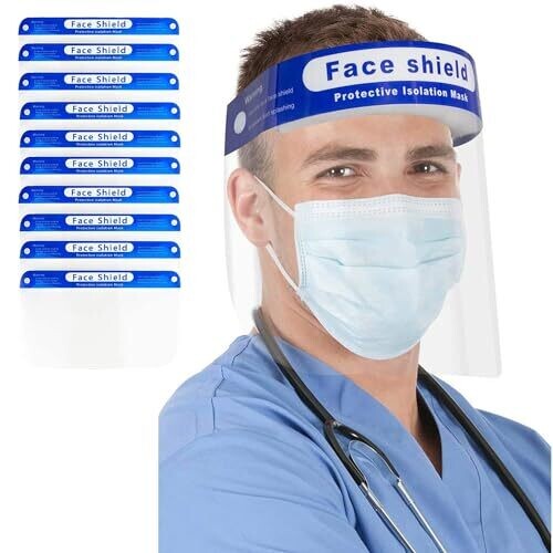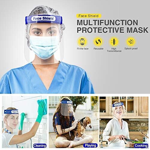 • Safety Face Shield Full-Cover Anti-Fog Shield Reusable Transparent Visor Mask