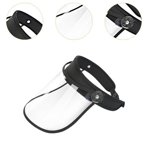 Klkcms transparent visor provides sturdy protection with a multipurpose, adjustable full-face shield suitable for work sites, fishing, walking, cycling, and outdoor activities. Open-top design improves airflow, comfortable fit with an adjustable headband, lightweight and reusable for daily use, black finish.