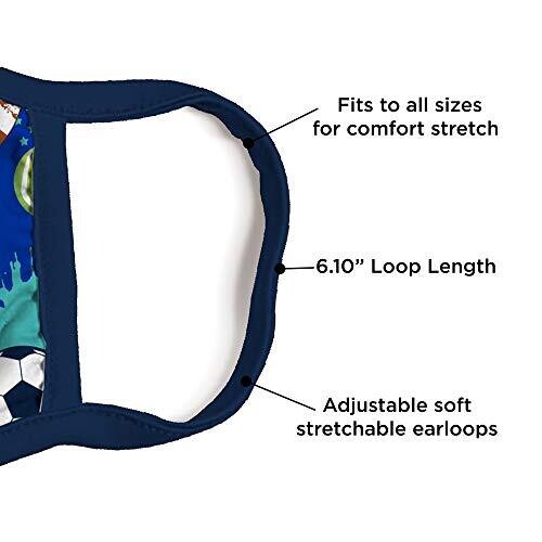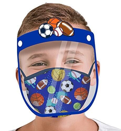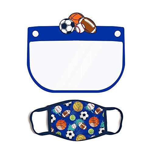 Delightful ABG Accessories kid face shield with a matching Little Boys reusable fabric mask set for ages 3–7. Playful ball design, reusable and washable, comfortable for outings and dress-up, making protection fun for Halloween or any safe activity.