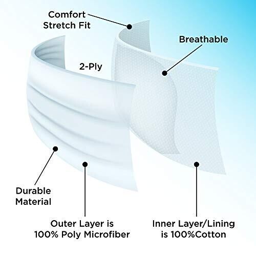Reusable and washable; Machine wash and line dry; stretchable earloops for comfort.