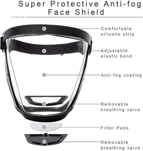 Anti-Fog Full Face Shield, Adjustable Visor, Reusable Mask, Lightweight Protection HD (Black)