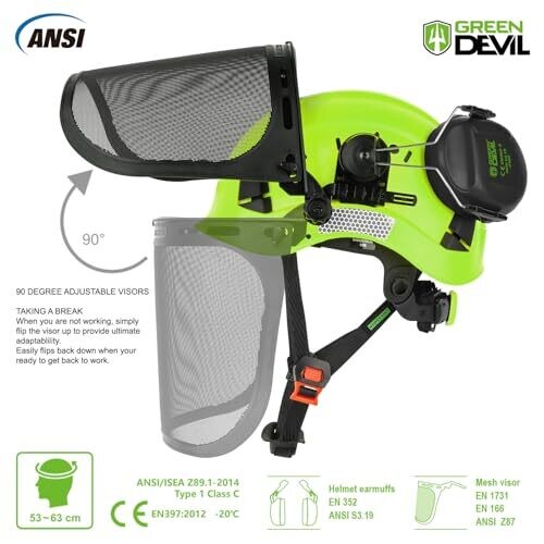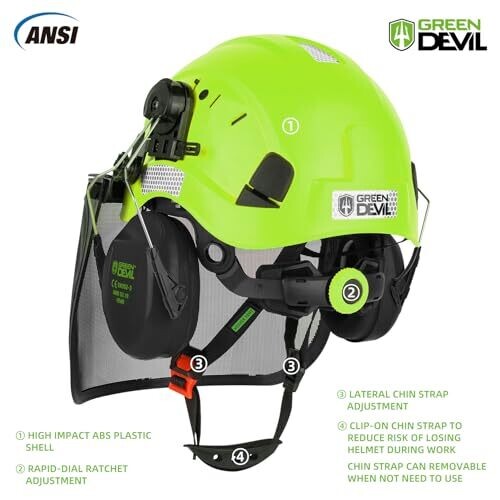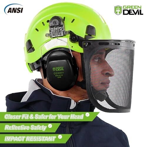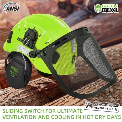 • Green Devil Safety Helmet Chainsaw Helmet with Mesh Face Shield 3 In 1 Hard Hat