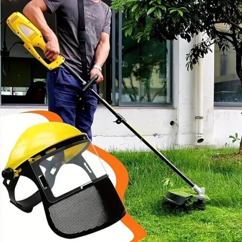 Operitacx Metal Mesh Face Guard for Lawn Mowing, Anti-Fog Protective Mask with Yellow Top, Shield